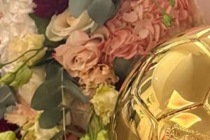 體育資訊09月23日訊 登貝萊榮膺2025年金球獎(jiǎng),他的妻子Rima Edbouche在INS上曬出一束鮮花和金球獎(jiǎng)獎(jiǎng)杯圖。