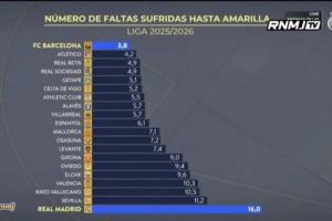 皇馬TV開炮:巴薩對手每3.8次犯規(guī)就有1黃,皇馬對手則要16次犯規(guī)