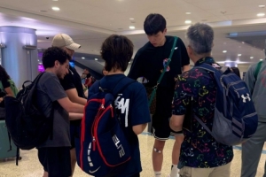 體育資訊7月11日訊 開拓者隊(duì)記Casey Holdahl曬出了一張楊瀚森在機(jī)場(chǎng)給幾位球迷簽名瞬間的照片,并寫到:“他已經(jīng)出名了?!?/p>
