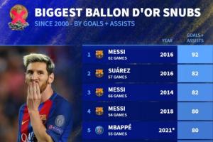 體育資訊09月24日訊 德國轉(zhuǎn)會市場盤點了各年份金球獎數(shù)據(jù),排出了對應年份中無緣金球獎的最高進球+助攻數(shù)據(jù)。以下是詳細排名。
