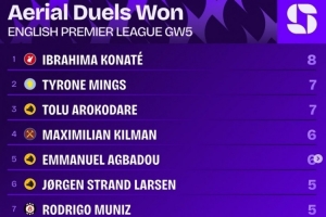 體育資訊9月24日訊 英超第5輪戰(zhàn)罷,squawkafootball列各項數(shù)據(jù)排行,利物浦中衛(wèi)科納特是本輪贏得爭頂最多的球員,共計8次。