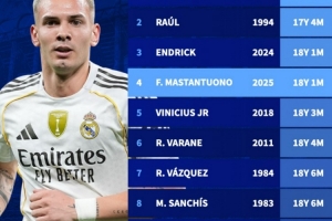 體育資訊9月24日訊 在本輪西甲皇馬4-1擊敗萊萬(wàn)特的比賽中,馬斯坦托諾破門,成為隊(duì)史西甲破門第四年輕的球員,以下為具體榜單: