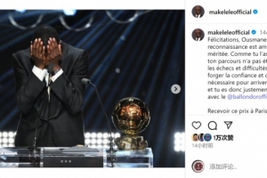 體育資訊9月24日訊 法國(guó)足壇名宿馬克萊萊更新社媒動(dòng)態(tài),祝賀登貝萊獲得金球獎(jiǎng)。
