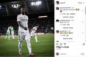 維尼修斯社媒曬出比賽照片,莫德里奇留言評(píng)論:“多么精彩的進(jìn)球,兄弟?!?/p>