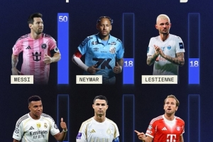 體育資訊9月25日訊 SofaScore統(tǒng)計(jì)了他們數(shù)據(jù)庫(kù)中獲得10分評(píng)價(jià)的次數(shù)排名,梅西50次遙遙領(lǐng)先。