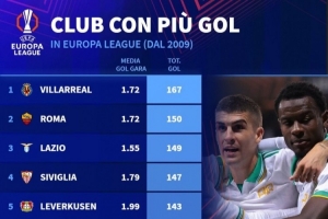 體育資訊9月25日訊 日前,德國轉(zhuǎn)會(huì)市場網(wǎng)站統(tǒng)計(jì)了2009年以來歐聯(lián)杯進(jìn)球數(shù)排行,比利亞雷亞爾以167球居首,塞維利亞第四、曼聯(lián)第六。
