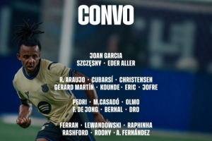 體育資訊9月25日訊 北京時間9月26日凌晨3:30,2025-26賽季西甲聯(lián)賽第6輪,巴塞羅那將客戰(zhàn)皇家奧維耶多。賽前,巴薩官方公布球隊大名單,萊萬領(lǐng)銜鋒線,亞馬爾缺席,小將德羅在列。