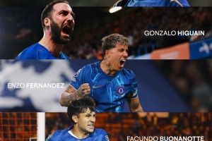 賽后,切爾西官方社媒祝賀成為第5個為藍(lán)軍進球的阿根廷球員。