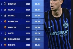 體育資訊9月26日訊 德國(guó)轉(zhuǎn)會(huì)市場(chǎng)盤點(diǎn)了意甲中衛(wèi)稅前薪資情況,國(guó)米的巴斯托尼以1020萬年薪居首,尤文的布雷默以930萬歐元年薪位居次席。值得一提的是,國(guó)米新援阿坎吉以880萬歐元位居第三位。