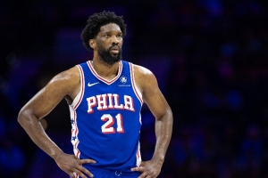 恩比德上賽季因為左膝傷勢只出戰(zhàn)了19場比賽,場均可貢獻(xiàn)23.8分8.2板4.5助0.9帽。