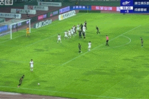 體育資訊09月26日訊 中超第26輪,浙江vs蓉城,浙江補(bǔ)時(shí)階段頭球攻門,劉殿座起跳神撲救險(xiǎn)。