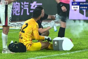 比賽第76分鐘時,劉殿座受傷倒地,隊(duì)醫(yī)進(jìn)場對他進(jìn)行治療,隨后主裁讓蓉城隊(duì)醫(yī)也給自己的大腿后側(cè)噴上噴霧。