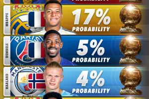 體育資訊09月26日訊 外國媒體SCORE90根據(jù)相關(guān)機(jī)構(gòu)賠率,列出了2026年金球獎獲獎概率,其中巴薩前鋒亞馬爾以18%的概率領(lǐng)跑。