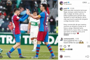 體育資訊9月27日訊 布斯克茨宣布本賽季結(jié)束后退役,巴薩中場(chǎng)佩德里社媒發(fā)文,為他送上祝福。