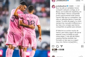 阿爾巴社媒曬出與布斯克茨的合照,并寫道:“布斯克茨,能與你在巴薩、西班牙隊(duì)以及邁阿密國際共用更衣室,這是我的莫大榮幸。我們幾乎整個(gè)職業(yè)生涯都并肩作戰(zhàn)。你不僅是隊(duì)友,更是場(chǎng)上場(chǎng)下的榜樣。你的球風(fēng)與視野始終獨(dú)樹一幟,那些歡笑與建議將永遠(yuǎn)銘刻于心。