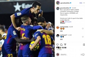 德烏洛費(fèi)烏社媒曬出與布斯克茨等隊(duì)友慶祝的合照,配文:“布斯克茨,很榮幸與你共度那些美好時(shí)刻,你是天才,名副其實(shí)的傳奇,感謝你為這項(xiàng)運(yùn)動(dòng)奉獻(xiàn)的一切?!?/p>