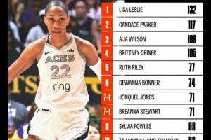 據(jù)統(tǒng)計,本場過后阿賈-威爾遜在季后賽蓋帽數(shù)來到108個,她也超越格里娜,獨居WNBA歷史第3位。在她身前是坎迪斯-帕克的117次和麗莎-萊斯莉的132次。