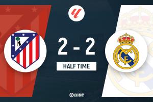 體育資訊9月27日訊 北京時間9月27日22:15,西甲第7輪馬競迎戰(zhàn)皇馬的比賽在大都會球場進(jìn)行,上半場索爾洛特開場失單刀,小西蒙尼助攻勒諾爾芒頭球首開記錄,居勒爾助攻姆巴佩單刀推射扳平比分,隨后維尼修斯助攻居勒爾抽射反超比分,阿爾瓦雷斯遠(yuǎn)射中柱,補時索爾洛特頭球扳平比分,半場結(jié)束,皇馬2-2馬競。
