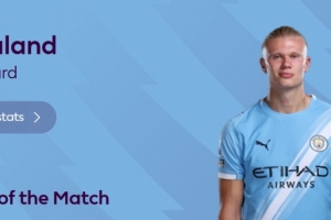 本場(chǎng)比賽哈蘭德打進(jìn)2球,并有1次助攻,賽后他也當(dāng)選英超官方球迷票選全場(chǎng)最佳球員。