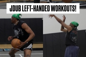 視頻中可見,杰倫威用左手完成了拍球、投籃和單挑等一系列訓練內(nèi)容。