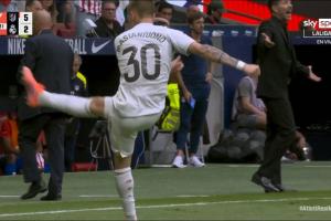 終場(chǎng)前,馬斯坦托諾被斷球后反搶拉人犯規(guī),往回走的馬斯坦托諾被場(chǎng)外來(lái)球砸中,隨后他一腳爆射將球踢回場(chǎng)邊,引發(fā)馬競(jìng)球員和球迷的不滿,雙方在最后時(shí)刻爆發(fā)沖突,主裁判也當(dāng)即向馬斯坦托諾出示黃牌予以警告。