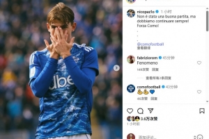 科莫本輪1-1戰(zhàn)平克雷莫內(nèi)塞,帕斯寫道:“這不是一場精彩的比賽,但我們必須始終繼續(xù)前進!加油科莫!”