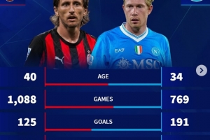 體育資訊9月28日訊 本輪意甲AC米蘭將迎戰(zhàn)那不勒斯,德轉也對比兩隊中場莫德里奇與德布勞內生涯數(shù)據(jù),具體如下: