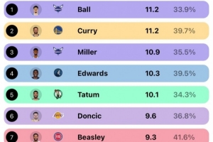 5人單賽季場均出手10+三分,聯(lián)盟歷史首次