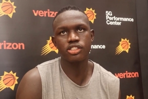 體育資訊9月30日訊 NBA球隊(duì)新賽季媒體日,太陽(yáng)10號(hào)秀、南蘇丹中鋒馬盧阿奇接受記者采訪。
