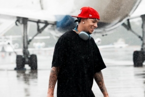 而在登機(jī)的時(shí)候,天下正下著不算小的雨,但黃蜂眾將沒有一個(gè)選擇撐傘,都是冒著雨不慌不忙的上飛機(jī)。