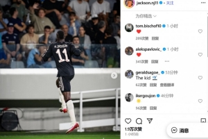 杰克遜曬出了自己的慶祝照。在本場(chǎng)比賽中,杰克遜代表拜仁首發(fā)出場(chǎng)并踢滿全場(chǎng),并在31分鐘接奧利塞助攻完成破門,迎來(lái)加盟拜仁后的首粒進(jìn)球。