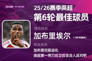 2025-2026賽季英超火熱進行中,體育資訊和咪咕體育聯(lián)合發(fā)起每輪英超最佳球員評選活動!第六輪評選結(jié)果結(jié)出爐,加布里埃爾頭球絕殺,幫助阿森納2-1戰(zhàn)勝紐卡斯爾,獲得吧友8萬票的支持,力壓哈蘭德當(dāng)選 【體育資訊X咪咕體育英超第6輪最佳球員】!