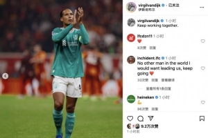 賽后,紅軍隊(duì)長范迪克更新社交媒體曬照配文鼓勵(lì)球隊(duì),寫道:讓我們繼續(xù)共同努力!