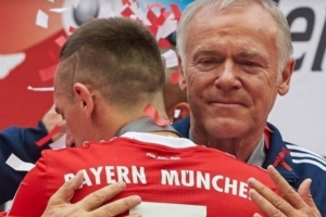 體育資訊7月12日訊 拜仁名宿里貝里更新社媒動態(tài),致敬退休的拜仁傳奇助教赫爾曼-格蘭德。