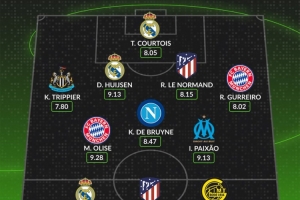 后衛(wèi):特里皮爾(紐卡)、赫伊森(皇馬)、勒諾爾芒(馬競)、格雷羅(拜仁)