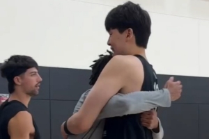 塞布爾一進門就熊抱楊瀚森打招呼,眾將面對鏡頭笑呵呵,而夏普則一臉嚴(yán)肅。