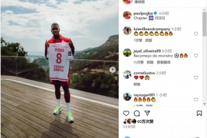 博格巴社媒曬手拿摩納哥球衣的照片,配文:“新篇章??”