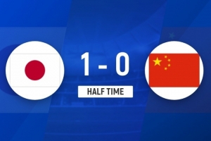 傷停補時2分鐘。上半場比賽結(jié)束,中國0-1日本。
