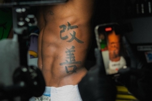 體育資訊10月7日訊 紋身師Kavon Udoh曬出了他為內史密斯新增紋身的動態(tài),內史密斯紋在腰間的是兩個大大的漢字——改善。