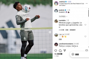 這種性格和沉穩(wěn)的態(tài)度,他也在社交媒體上展現(xiàn)了出來。當許多隊友正在各自的國家隊中集訓時,恩德里克留在馬德里訓練。他在自己的Instagram賬號上發(fā)布了一組身穿皇馬訓練服的照片,并配文:“感恩”