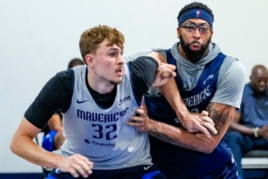 體育資訊10月8日訊 今天,獨行俠官方曬出了球隊訓練照。其中,弗拉格和安東尼-戴維斯激烈卡位。