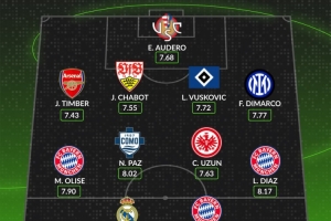 體育資訊10月8日訊 WhoScored根據(jù)球員的場(chǎng)均評(píng)分列出了本賽季至今五大聯(lián)賽最佳陣容,姆巴佩、凱恩領(lǐng)銜,迪亞斯、奧利塞、迪馬爾科、廷伯在列。