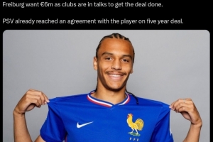 報(bào)道稱弗賴堡希望能得到600萬歐,還在與埃因霍溫談判以求完成交易。埃因霍溫已經(jīng)與球員就一份五年合約達(dá)成一致。