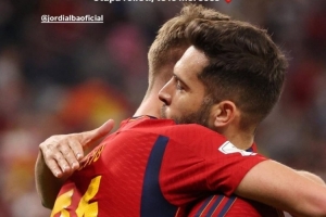奧爾莫社媒曬出與阿爾巴在西班牙隊的合照,配文:“一位10號邊后衛(wèi)。能與你共用更衣室并向你學習,我深感榮幸。天生的競爭者,場上場下皆是楷模?!?/p>