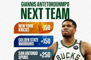 體育資訊10月9日訊 根據(jù)BetUS NBA的數(shù)據(jù)顯示,字母哥下家最大熱門(mén)就是尼克斯,而勇士、馬刺等隊(duì)也都被認(rèn)為是他的潛在熱門(mén)下家。