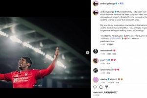 “新的篇章即將開啟,但這一段經(jīng)歷也將永存我心。感謝你,@諾丁漢森林俱樂部 ????”