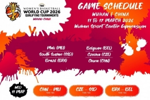 2026女籃世界杯預(yù)選賽武漢賽區(qū)日程出爐,比賽屆時(shí)將在武漢體育中心體育館進(jìn)行,每個(gè)比賽日三場(chǎng)比賽。中國隊(duì)日程安排如下(開球時(shí)間待定):