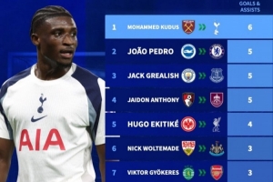 體育資訊10月9日訊 德國轉會市場盤點了英超新援參與進球數(shù)據(jù),庫杜斯參與6球排名第一。