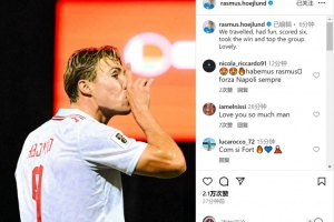 霍伊倫社媒曬出比賽照片,慶祝球隊(duì)取勝,配文:“我們遠(yuǎn)征客場(chǎng),享受比賽,轟入6球,拿下勝利并領(lǐng)跑小組!太美妙了?!?/p>