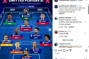下一篇: 德轉(zhuǎn)列落選本期國(guó)家隊(duì)最貴陣:貝林、福登在列,總價(jià)高達(dá)6.77億歐